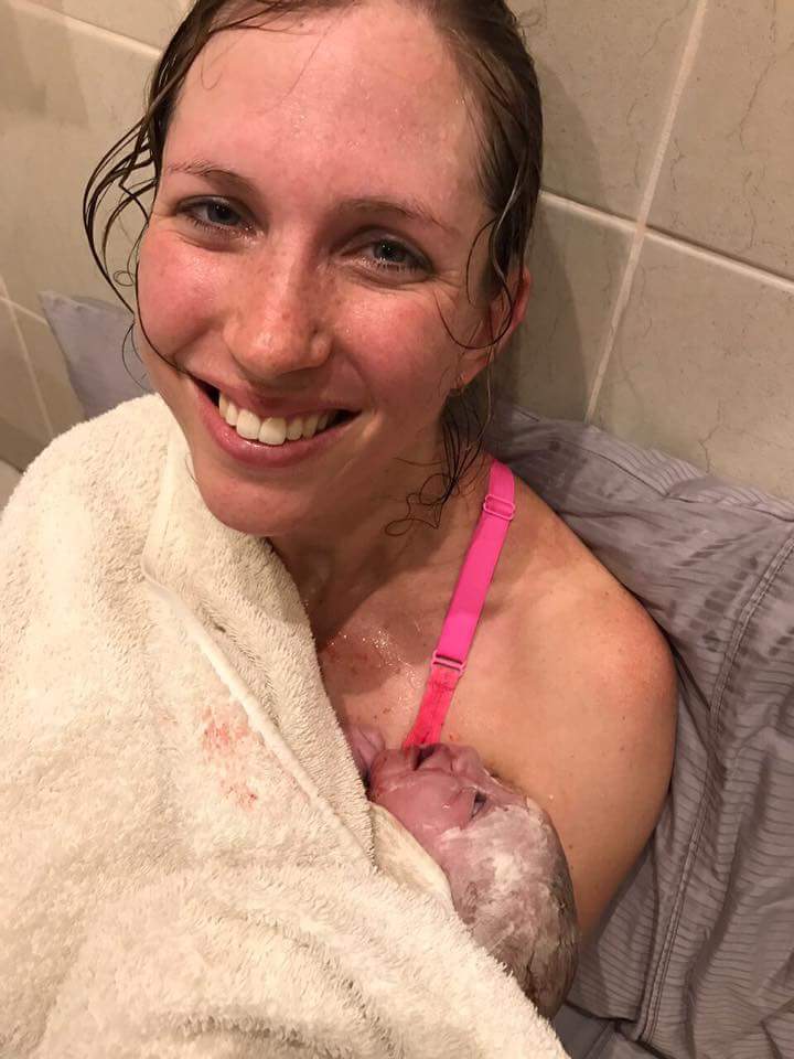 During labour, we were in the bathroom together and I sensed that Tess felt self-conscious with me in the room. I excused myself for a few minutes to give her some privacy, while staying close by outside the room. Once she was alone, Tess could release her inhibitions and bear down, and give birth to her baby.