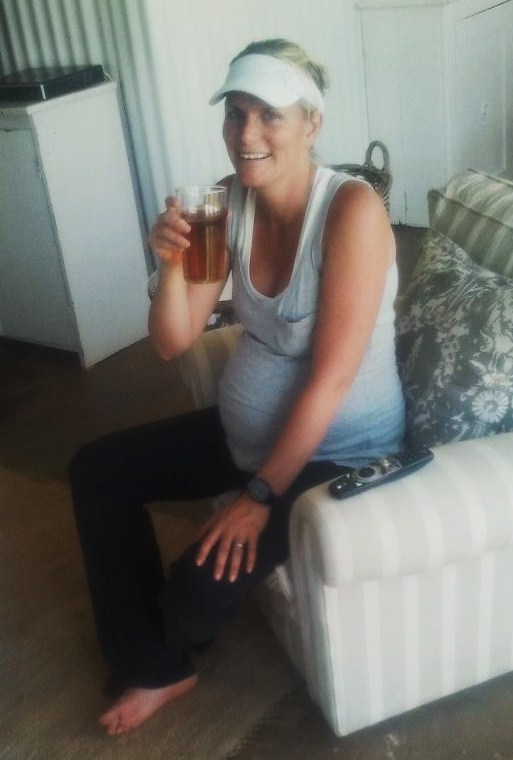 Paula drinking a toast to a 'green' pregnancy in pain free early labour