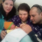 Did you know that the vaginal walls may contain receptors and signal cells to stimulate the release of oxytocin during labour? This is the case with other mammalian species and can be extrapolated to apply to our own human species. The experience of vaginal birth may therefore promote bonding and immediate benevolence towards one’s offspring after birth. This is not to say that mums who don’t give birth vaginally are not responsive to their infants; it may just be more difficult for them to experience the immediate physiological response. This effect can be mitigated by Kangaroo Mother Care and immediate breastfeeding after surgery.Sophie after her birth and with her familySophie’s Mum Angelia developed an illness called cholestasis late in her pregnancy and it was touch and go whether she would be able to give birth naturally. Cholestasis affects the liver and releases poisons into the blood stream that may harm the baby. Angelia was induced and with lots of encouragement and some wonderful hospital staff who enable Angelia to take a long warm bath, she gave birth victoriously to little Sophie. While Angelia had not regarded herself as the motherly type, she was duly smitten and has succumbed to the pleasure of breastfeeding and mothering her sweet daughter. Kudo’s go all round to her husband and her mum, who supported Angelia in every way.