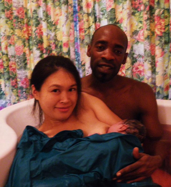 Yuko, (pictured above) navigated her pregnancy with calm composure and love. She prepared for the birth with confidence and anticipation. Yuko and Deji’s baby, Omotayo, birthed spontaneously and was lifted into the world by his mother. There were no instruction by the midwife, no administration of drugs and no separation after birth. Omotayo spent at least 60 minutes in the bath with his mother and father and spontaneously latched and suckled within that time. There was no crying. Yuko says it was the most amazing experience of her life!